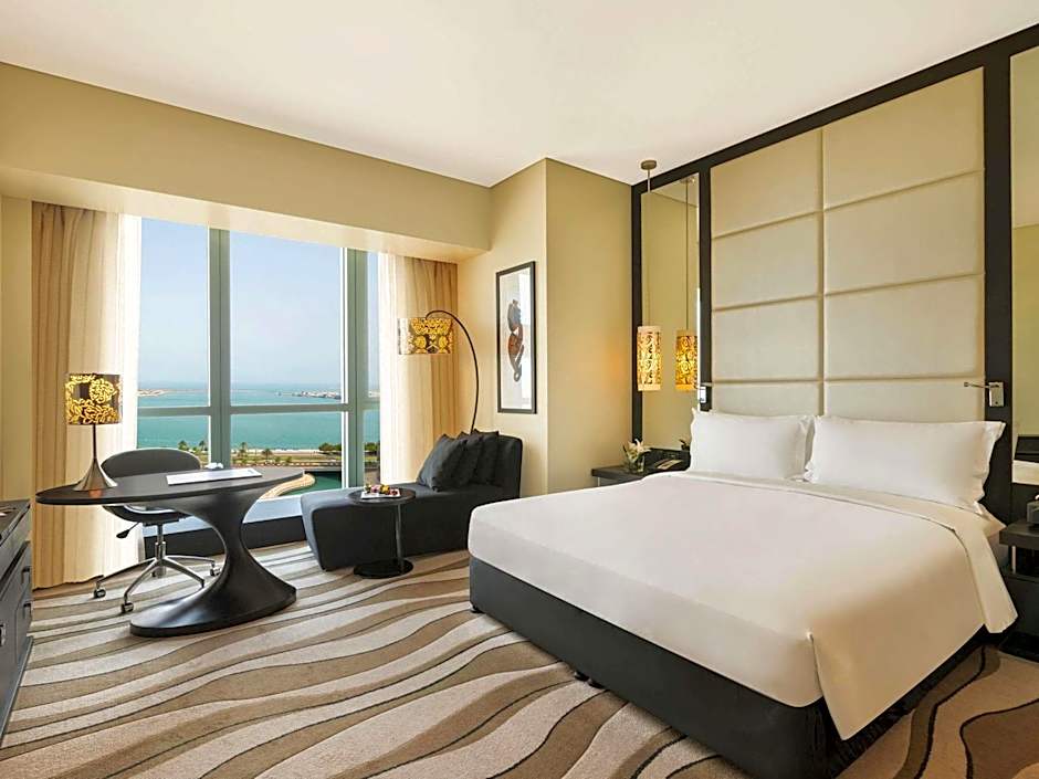 This luxurious room features views over the Corniche and the city. It offers an executive lounge access. It includes a 55-inch flat-screen TV and sound system. The room comes with a laptop-size safe and a mini-bar. The partially open bathroom has a bathtub, a rainfall shower, and a bidet. It also has a hairdryer, designer toiletries, bathrobes, and slippers. No extra beds are available for this room type.